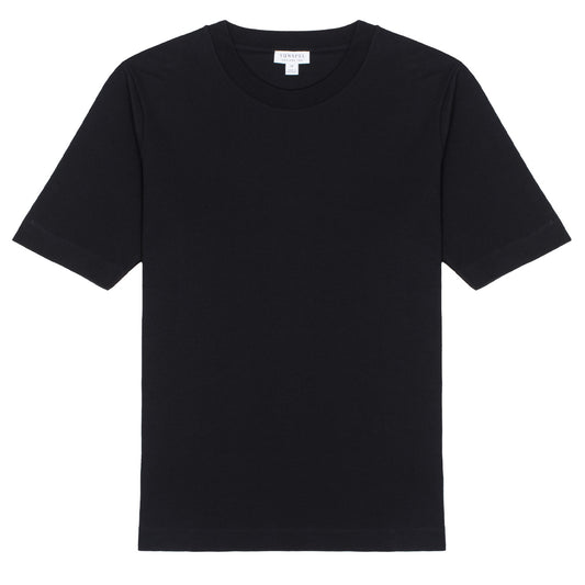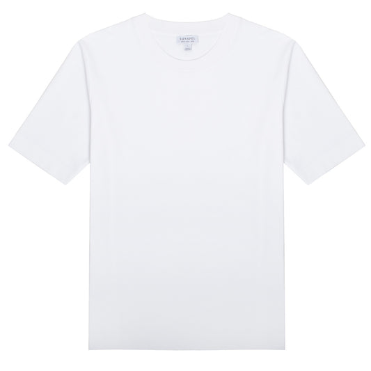 Sunspel t-shirts are crafted from premium cottons—such as long-staple and deck-style cotton—chosen for their softness, durability, and breathable properties, ensuring a comfortable, luxury finish.