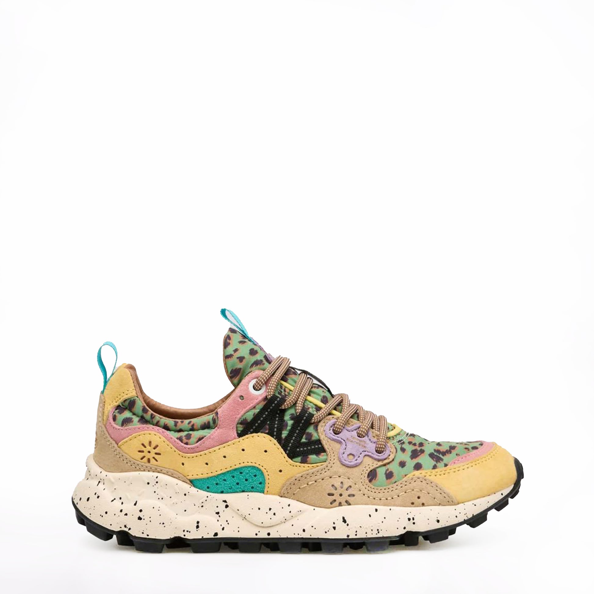 The Flower Mountain Women's Yamano 3 Trainer in Beige and Sand combines sporty design with standout style. Crafted with a cotton upper featuring a zen garden print and multicolour suede inserts, it includes trekking laces and a signature shaped eyelet. The fabric and leather lining pairs with a natural cork insole for breathable, antibacterial comfort. Finished with an ultra-light rubber sole and indented tread, this trainer offers reliable grip and everyday ease.
