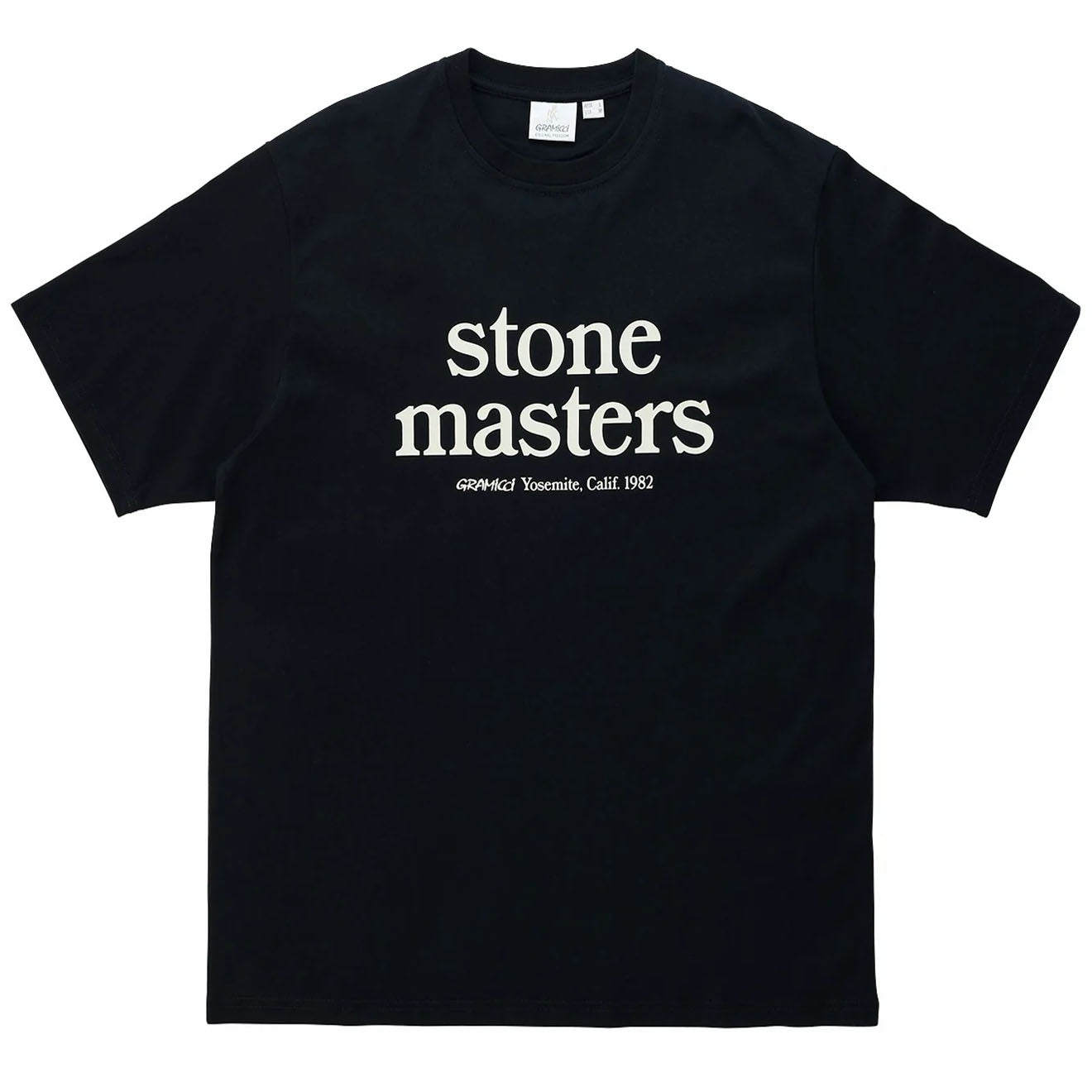 The Gramicci Stonemasters Tee in Black is crafted from mid-weight jersey cotton, making it a versatile year-round essential. Perfect for warm summer days paired with shorts or layered under a jacket in colder months, this tee offers both comfort and style. The stylish graphic adds a bold touch to your look, making it a must-have piece to elevate your wardrobe.