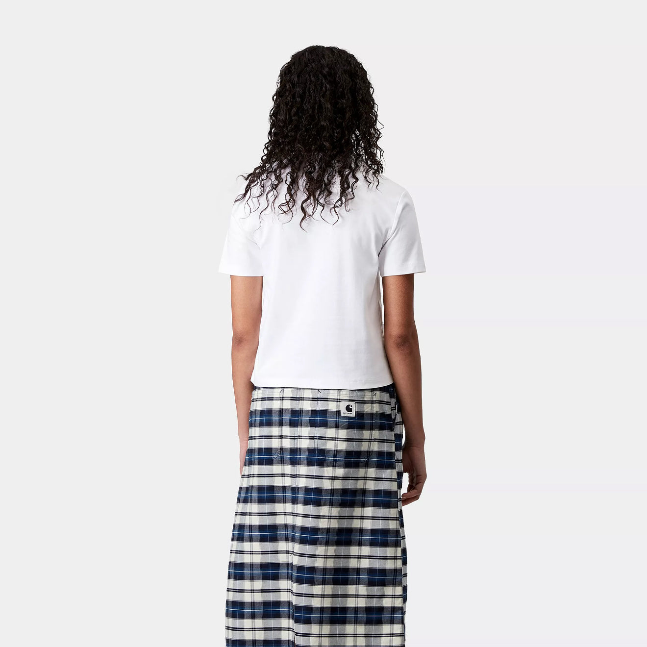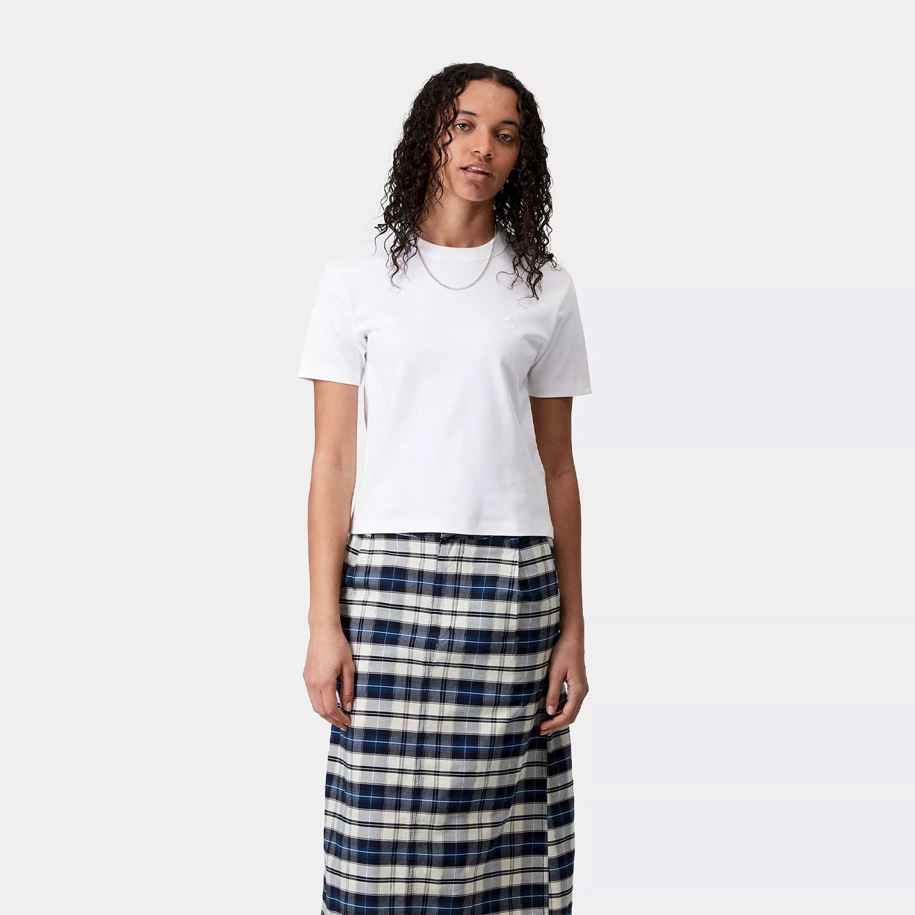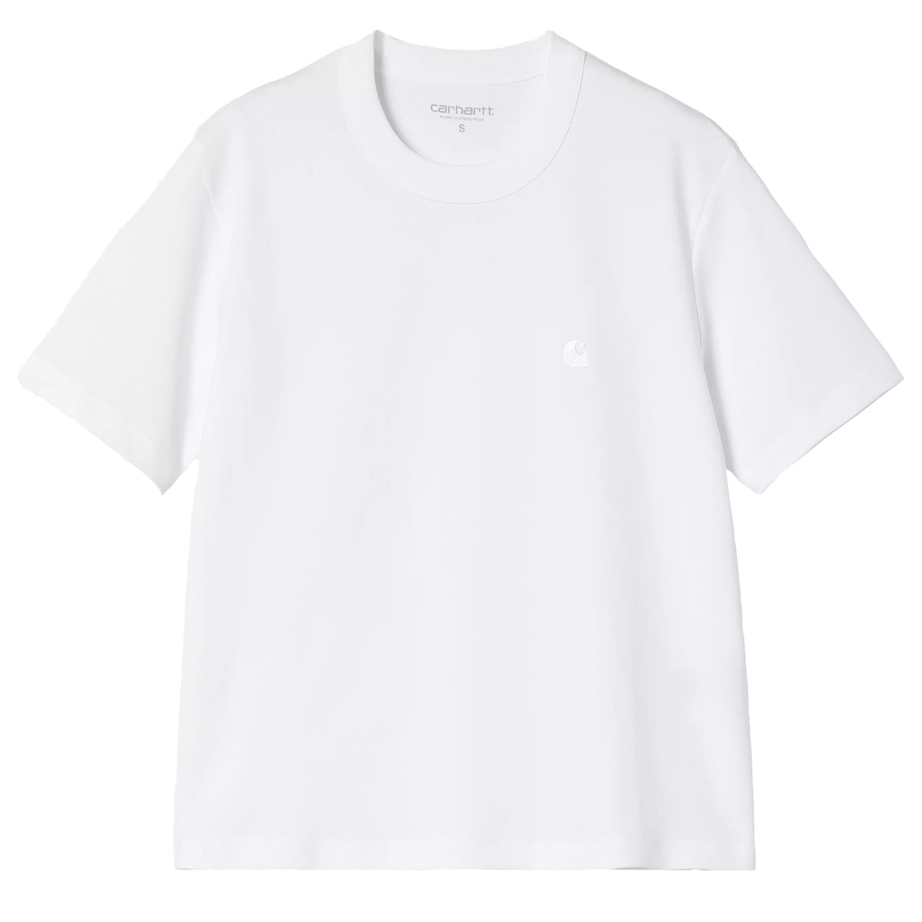 The Carhartt WIP Women's S/S Luca T-Shirt in White is crafted from soft knitted cotton interlock, offering a comfortable slim fit. Featuring an embroidered 'C' logo on the front, this t-shirt adds a subtle yet stylish touch to any outfit. Ideal for everyday wear, it combines comfort, quality, and timeless design, making it a must-have wardrobe essential. Perfect for casual styling or layering, this Carhartt WIP t-shirt effortlessly blends functionality and fashion.