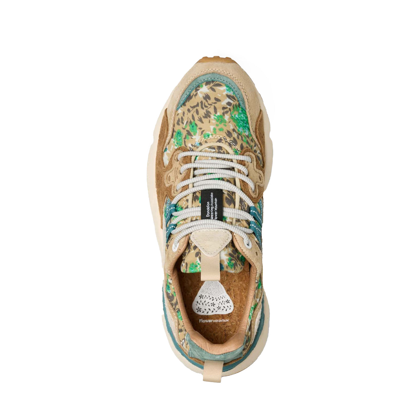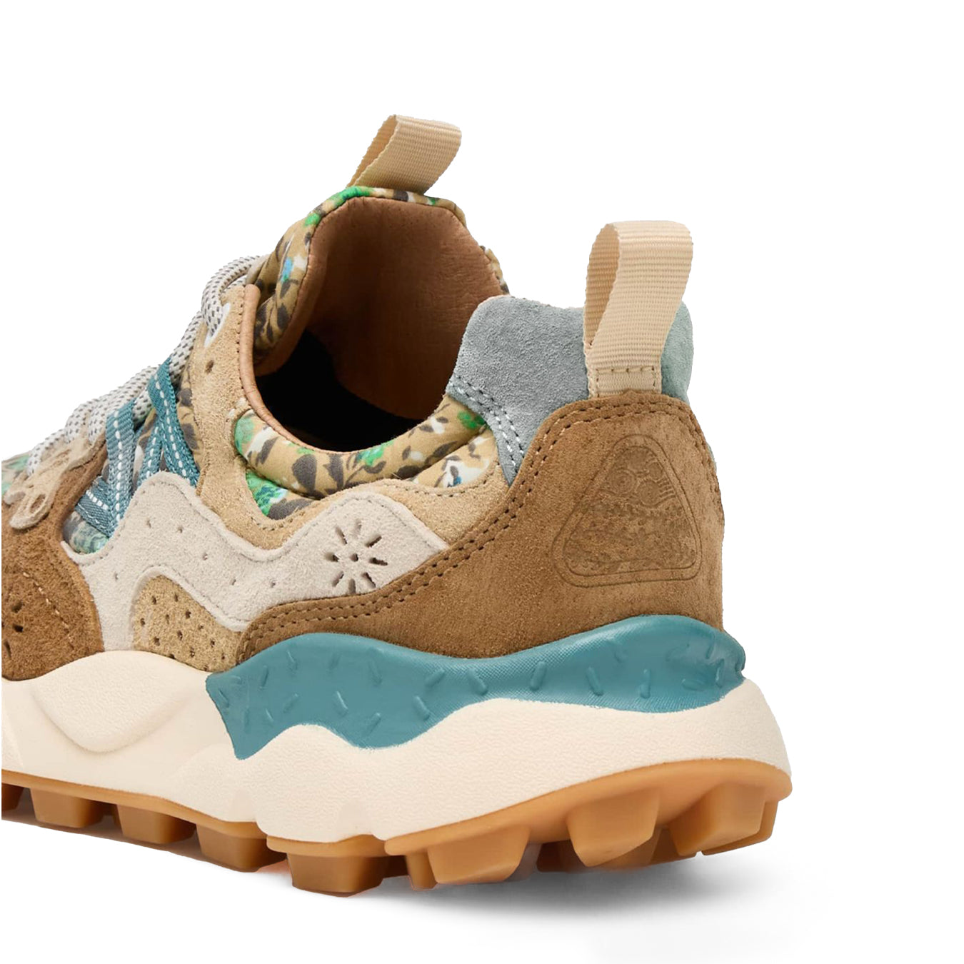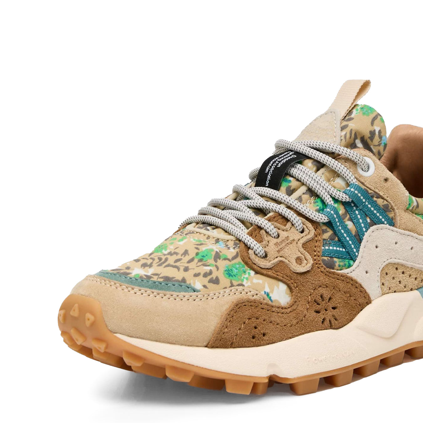 The Flower Mountain Women's Yamano 3 Trainer in Spring Flowers blends vibrant style with outdoor functionality. Featuring a floral print upper in technical fabric and multicolour suede inserts, it includes trekking-style laces and a custom-shaped eyelet. The leather lining and natural cork insole provide antibacterial comfort for all-day wear. With a moulded, ultra-light rubber sole and indented tread, this trainer offers superior traction and stability for everyday adventures.