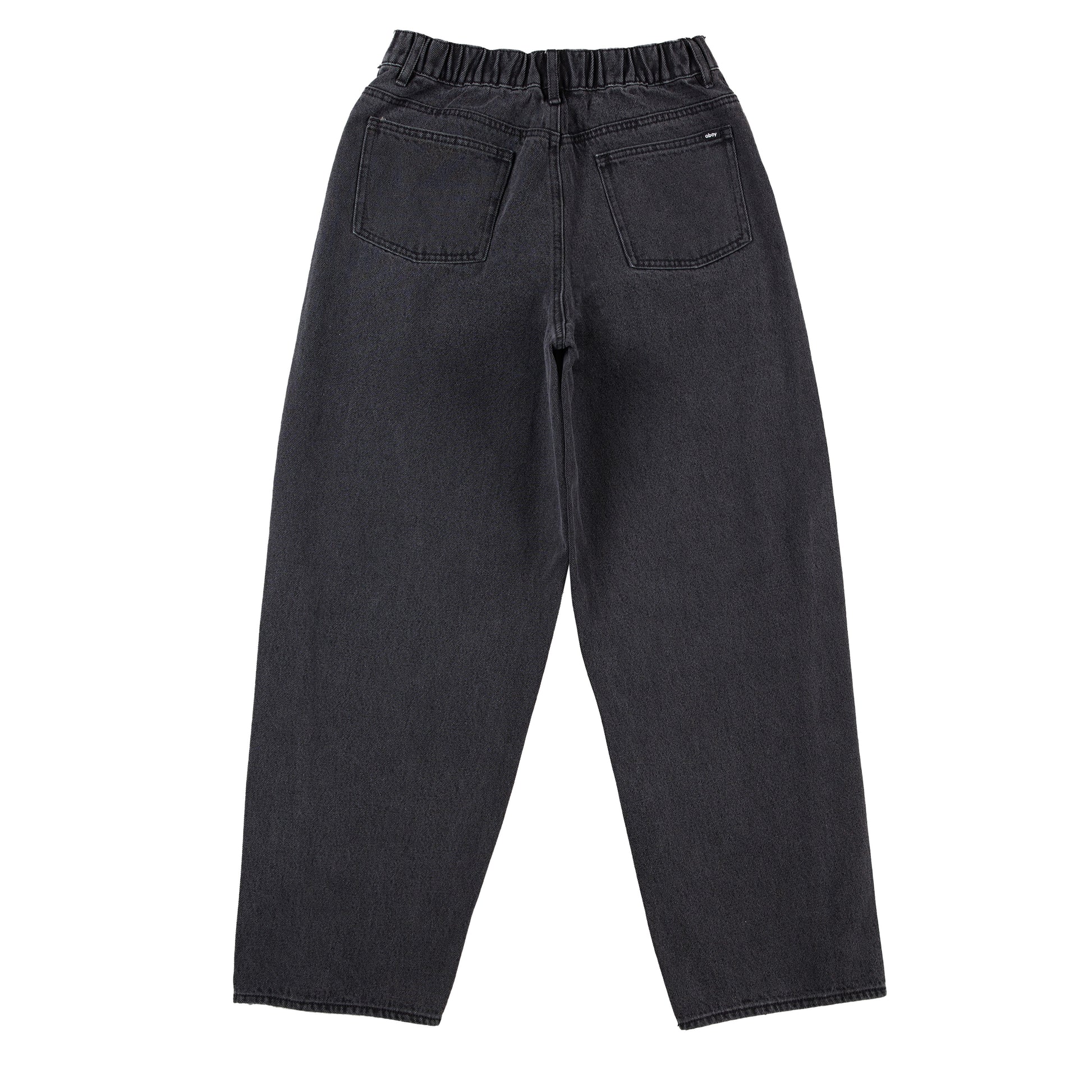 The Obey Women's Leah III Baggy Denim in Black Ash combines comfort and style with a relaxed fit. Made from durable cotton denim, these baggy jeans feature a shank button closure, zipper fly, and full back elastic for added flexibility. The tapered leg and wide leg opening create a modern silhouette, while the back patch pocket and Obey labelling on the right back pocket add subtle branding. Perfect for casual, everyday wear, these jeans offer a great balance of practicality and fashion.