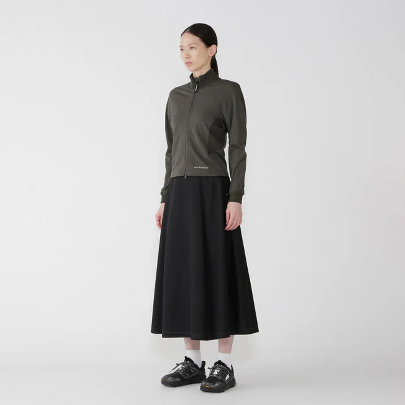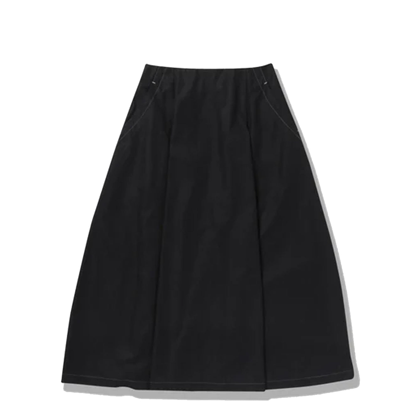 The And Wander Womens High Count Cloth Skirt Black is a flared silhouette designed for technical performance and contemporary outdoor style. Crafted from high-density 75D yarn, the fabric is brushed and dyed for a unique texture and features a water-repellent finish for practical weather protection.