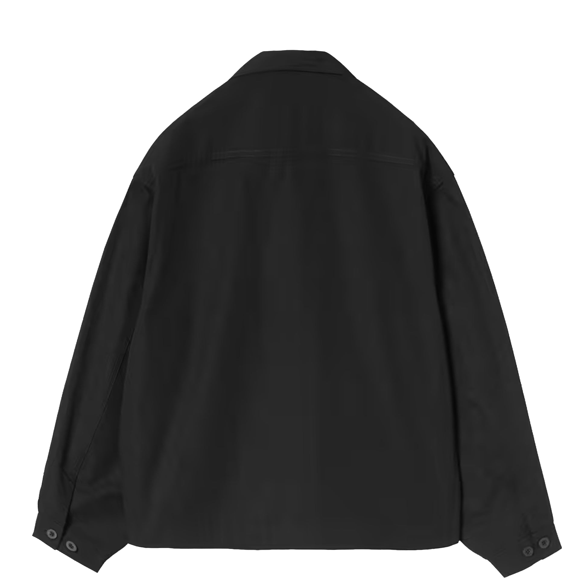 The Carhartt WIP Womens Postal Jacket in Black/Wax offers a clean, casual silhouette in a durable polycotton blend. It includes functional features like front pockets, a two-way zip, and adjustable cuffs, highlighted by an embroidered Script Logo on the chest.