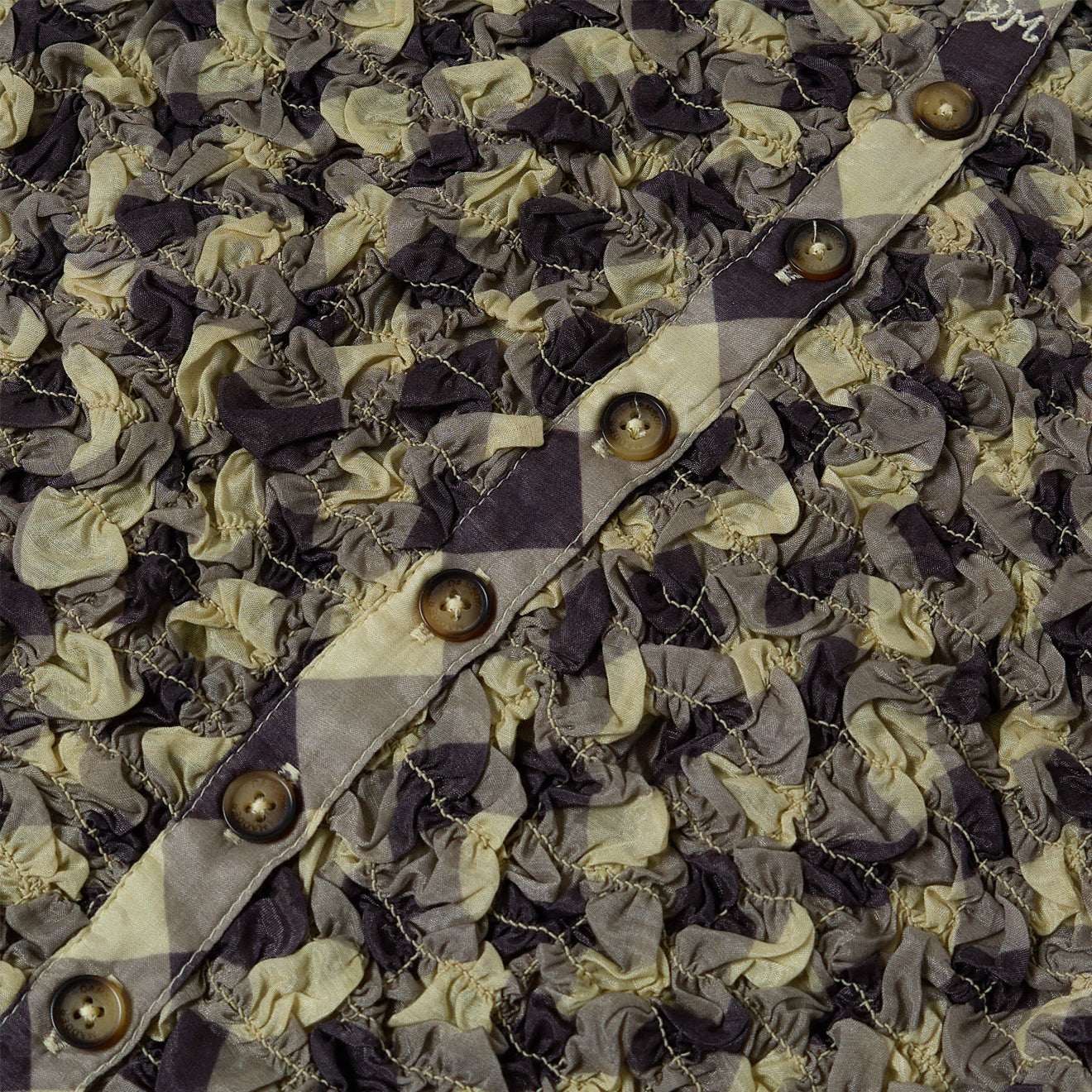 The Damson Madder Posey Cardi Midi Dress in Sheer Butter Gingham combines a soft, cotton structure with thoughtful detailing. Featuring a button-front cardigan style, a smocked bodice, and a tiered ruffled hem, it offers comfort, movement, and timeless charm.