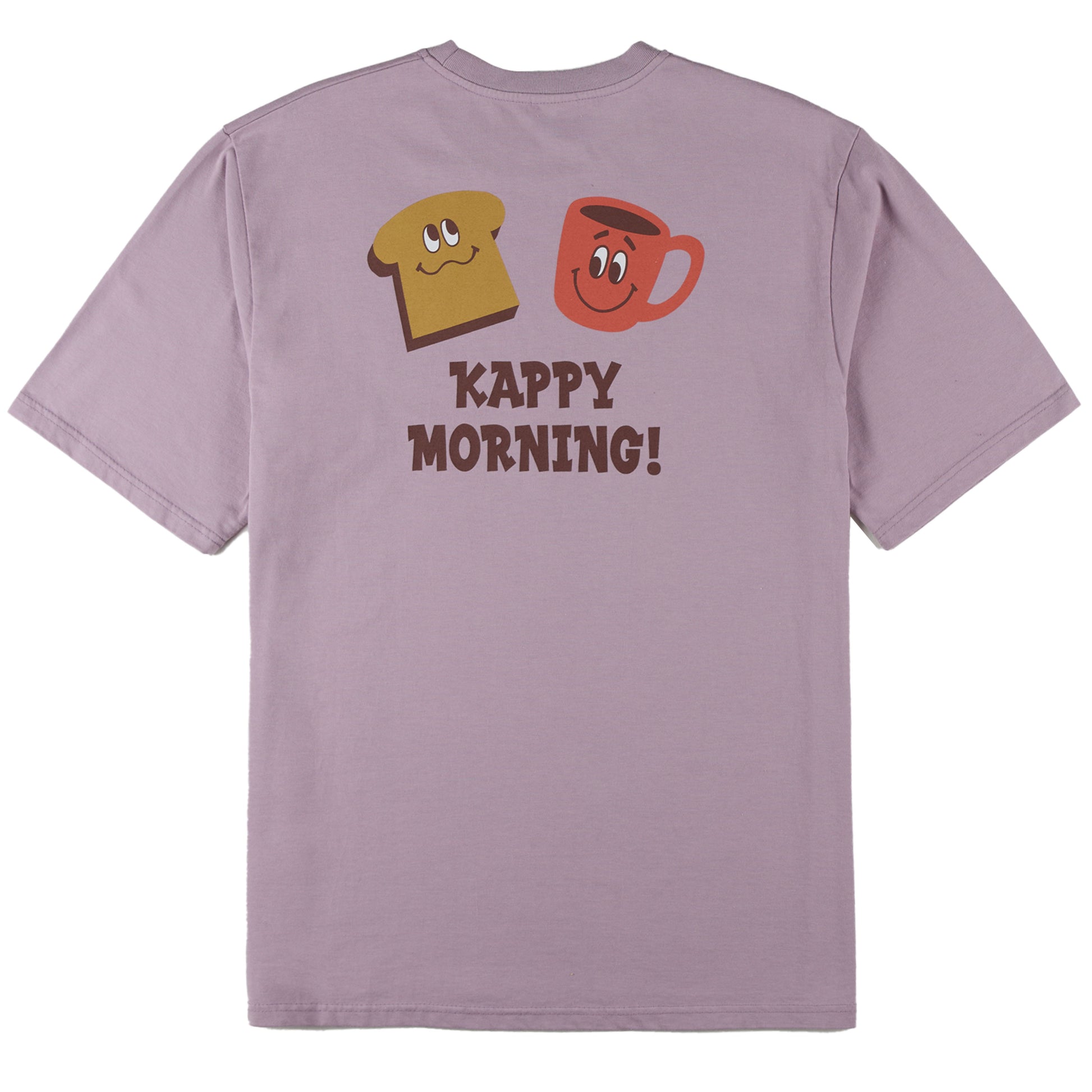 The Kappy Morning Half T-Shirt Toru Fukuda Edition Lilac is a limited edition collaboration with Japanese illustrator Toru Fukuda. Made in Korea from 100% cotton, this boxy fit tee features a relaxed oversized silhouette. It blends exclusive artwork with everyday comfort, making it a standout piece for casual creative style.