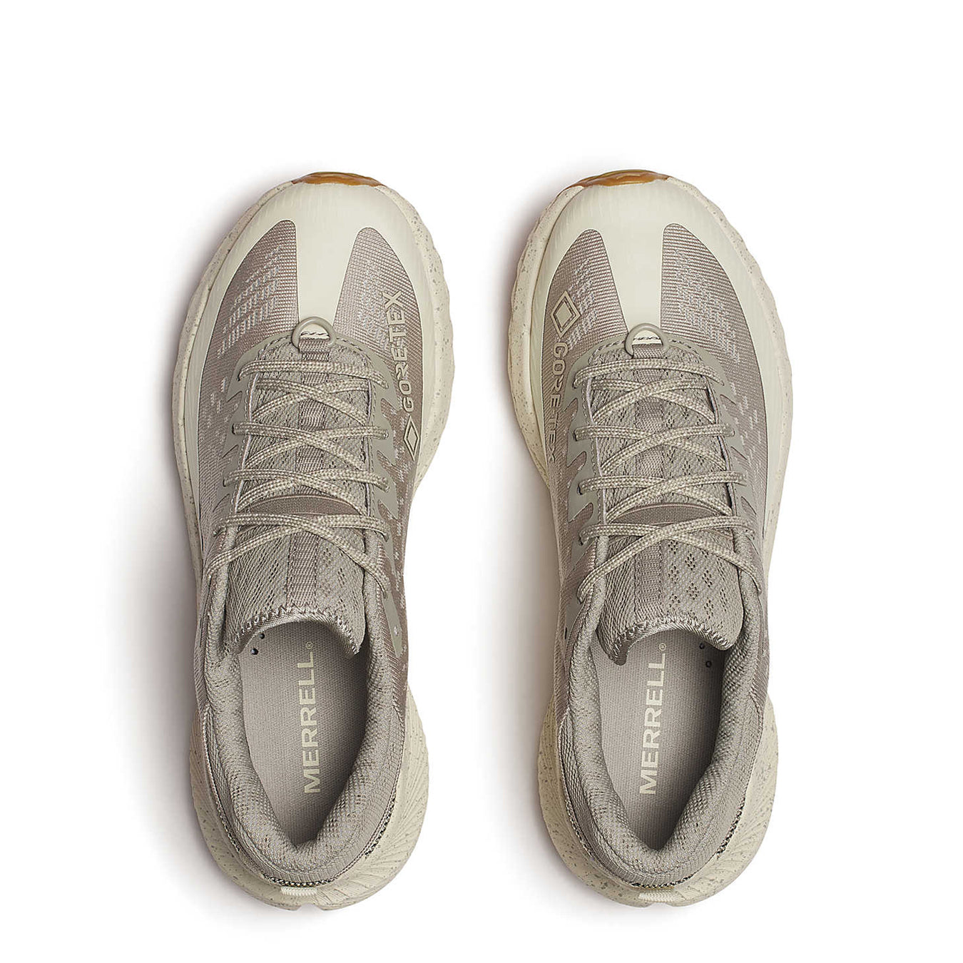 The Merrell Womens Agility Peak 5 GTX Trainer in Diorite/Stucco is a versatile trail shoe designed for comfort and protection on varied terrain. With a GORE-TEX® membrane, an improved rocker sole, and a sculpted heel cup, it provides cushioning, stability, and waterproof performance for long runs or casual outdoor activities.